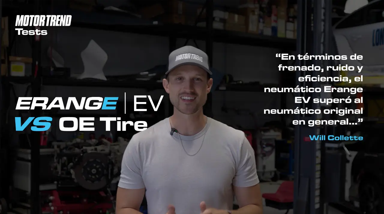 Vea al equipo de prueba MotorTrend evaluar independientemente los neumáticos ERANGE EV contra un neumático de Nivel 1 de fabricante de equipo original en condiciones reales.